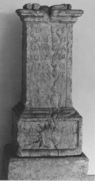- D(eo) I(nvicto) S(oli) / Martius Martia/lis pater / in suo / posuit
