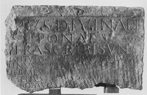 - [In honorem dom]us divinae et I[---] / Eponae / [--- i]nfra scribti(!) sunt // [---] Restitutus / [---]rinus / [---] Hermes / [--- A]sclepius / [--- Eu]tropius / [---]us / [------ // C(aius) Iulius Ammius / M(arcus) A[---]