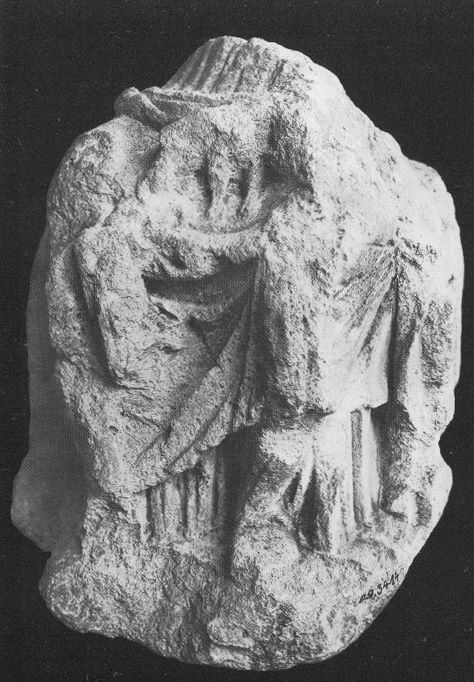 - mythische Figur: thronende Muttergöttin in Chiton und Mantel, auf dem Schoß hockender Hund