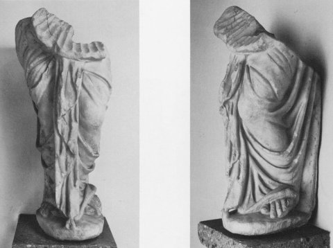 - nur Unterkörper und Beine erhalten, in der Muschelschale Bohrung für ein Wasserrohr