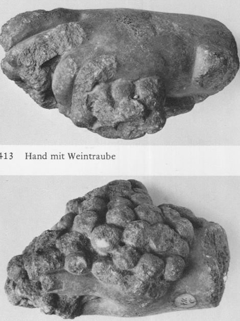 - linke Hand mit Weintraube (von einer Dionysos-Statue ?)