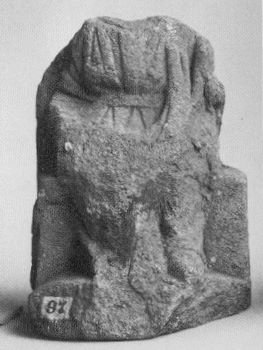 - Kopf, linker Arm, rechter Unterarm abgebr., Vorderseite unten tlw. abgeschlagen, Rückenlehne verbr.