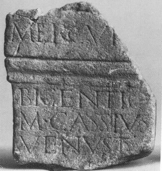 - Mercur[io] / Bigentio / M(arcus) Cassius / Venustu[s] / [v(otum)] s(olvit) l(ibens) [m(erito)]