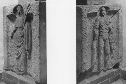 - Mythische Figuren in Rechtecknischen mit Bogennischen für die Köpfe: Juno mit Szepter im linken Arm, in der rechten Hand Zweig; auf der gegenüber liegenden Seite Hercules mit Löwenfell und Keule.