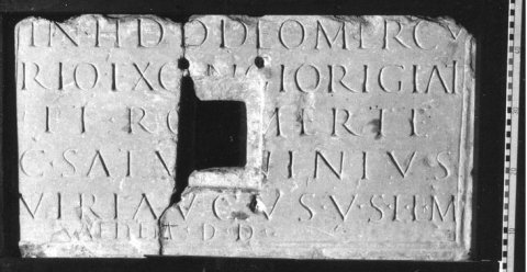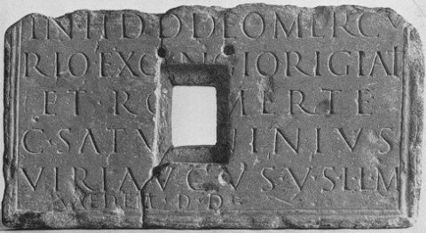 - In h(onorem) d(omus) d(ivinae) deo Mercu/rio Excingiorigiati / et Ro[s]mert(a)e / C(aius) Satu[r]ninius / Viriaucus v(otum) s(olvit) l(ibens) l(aetus) m(erito) / aedem d(onum) d(edit)