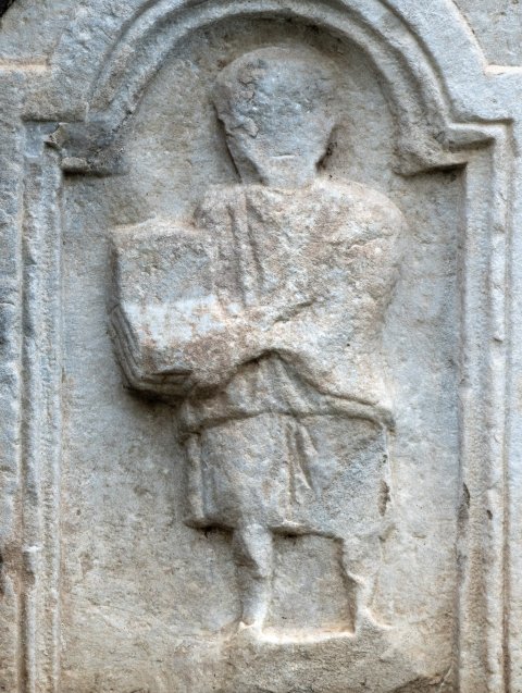 - Diener (Librarius, Scriba) mit aufgeklapptem Diptychon