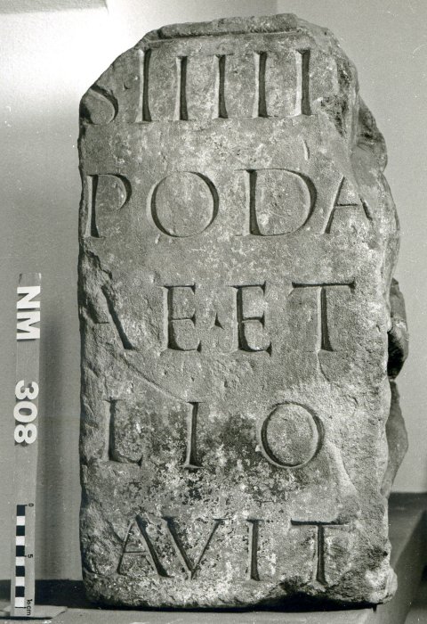 - ---]S IIIIII[vir] / [---]PODA[---] / [---]ae et [---] / [--- fi]lio [---] / [faciendum cu]ravit