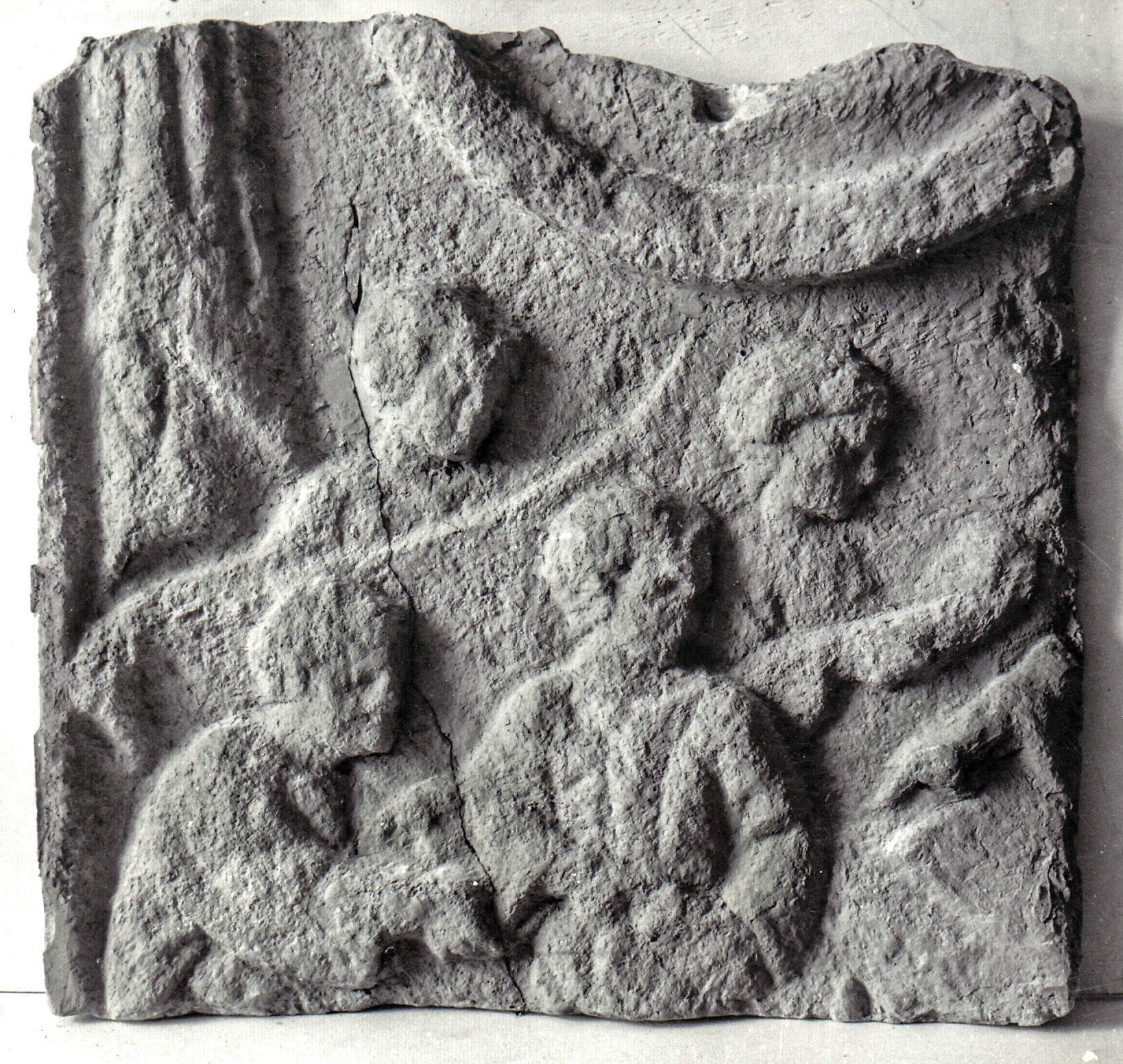 32672 Reliefblock mit Szenen beim Tuchhändler
