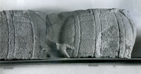 - Relief tlw. abgeschlagen, oben, rechts u. unten abgebr.