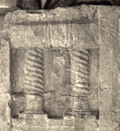 - eingetieftes Bildfeld mit einer Presse mit zwei massiven Schraubgewinden