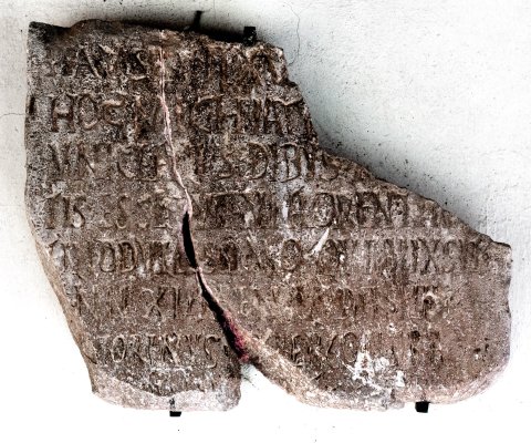 - rundum abgebr., aus 2 Fragmenten zusammengesetzt