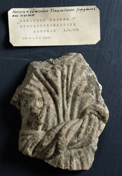 - Torsofragment einer Frauenfigur in Tunica und Mantel