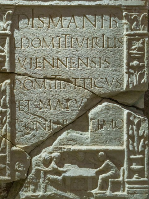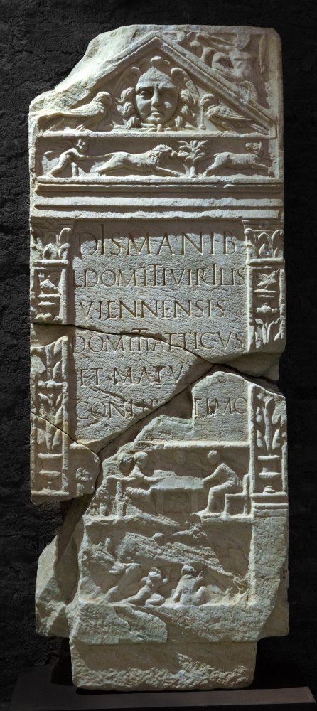 - Dis Manib(us) / L(uci) Domiti Virilis / Viennensis / Domiti Atticus / et Matur[u]s / conlib(erto) [op]timo