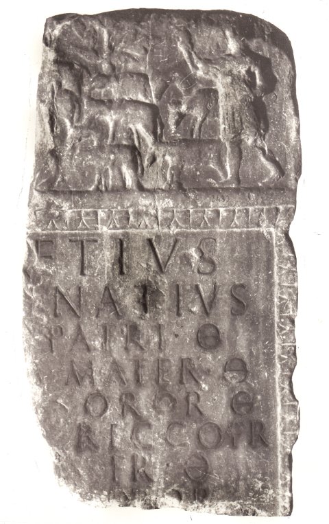 - [---]etius / [---]inatius / [---]patri |(obitus) / [---]a mater |(obita) / [---] soror |(obita) / [---]recco fr(ater) / [---] fr(ater) |(obitus) / [---] soror / [---