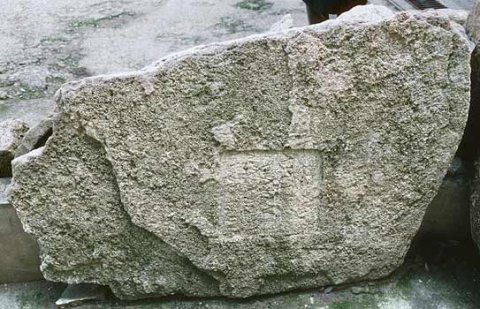- roh zugeschnittene Platte mit vertieftem Schriftfeld u. Zapfen unten