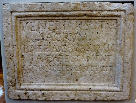 - Veneri Ansotic(ae) / sacrum / Baebia C(ai) f(ilia) Maximil/la ex testament(o) / L(uci) Corneli Bassi fecit