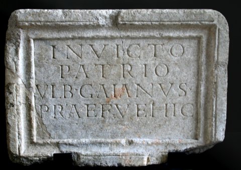 - Invicto / Patrio / Ulb(ius)! Gaianus / praef(ectus) vehic(ulorum)