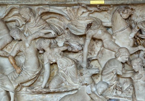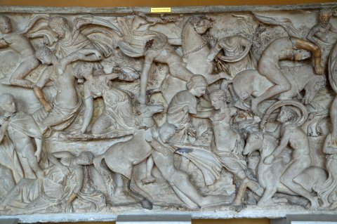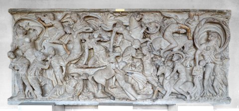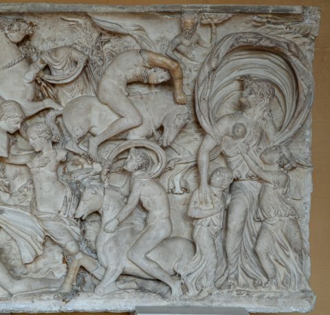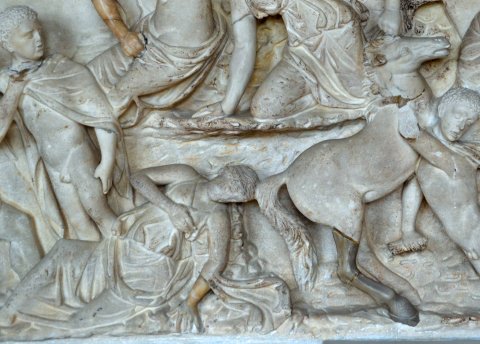 - Mythos: Niobiden (Typus 2 mit Eltern an den Enden der Langseiten und Söhnen zu Pferd).