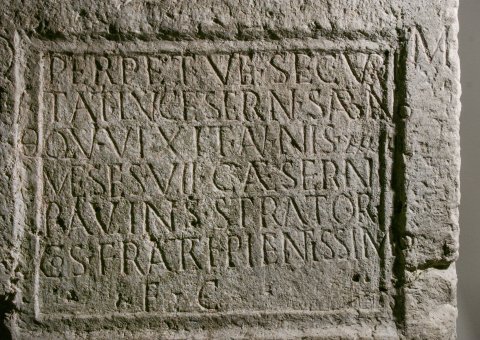 - D(is) M(anibus) // perpetu(a)e securi/tati Lu(cio) C(a)esern(io) Sabino / qui vixit annis XXXVIII / me(n)ses VII Caeserni(us) / Paulinus strator / co(n)s(ularis) fratri pientissimo / f(aciendum) c(uravit)