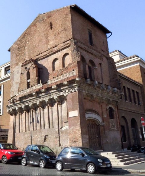 - Römische Archtekturteile, verbaut in der zwischen 1040 und 1065 errichteten Residenz der Familie Crescenzi auf dem Forum Boarium.