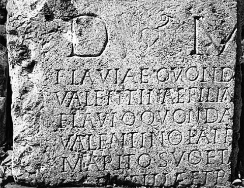 - D(is) M(anibus) / Flaviae quond[am] / Valentinae filia[e et] / Flavio quonda[m] / Valentino patri [et?] / marito suo et A[-]/[---]v filiae et R[--]/[---