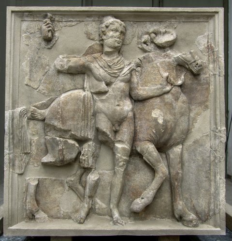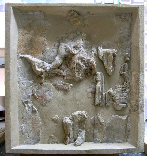 - In der Antike zerschlagen, 1948 durch Lagerung im Freien stark beschädigt.