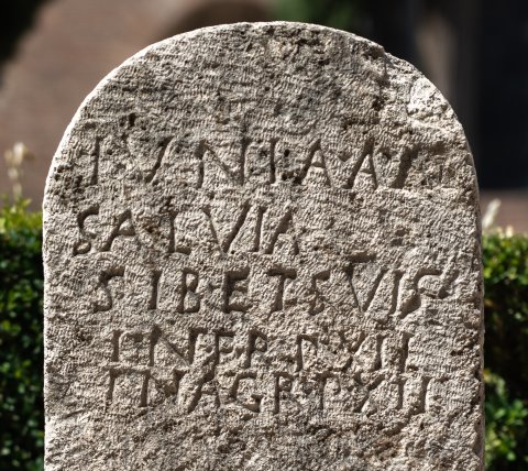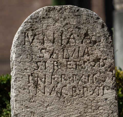 - Iunia A(uli) l(iberta) / Salvia / sib(i) et suis / in fro(nte) p(edes) XII / in agr(o) p(edes) XII