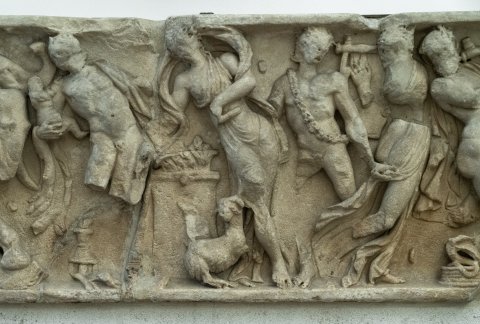 - F. Matz, Die dionysischen Sarkophage, ASR 4, 2, 1968, 274 Nr. 138; W. Helbig, Führer durch die Sammlungen in Rom III, 4. Aufl. 1969, 289 Nr. 2363; A. Giuliano (Hrsg.), Museo Nazionale Romano. Le Sculture 1/5, 24 ff. Nr. 12