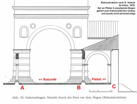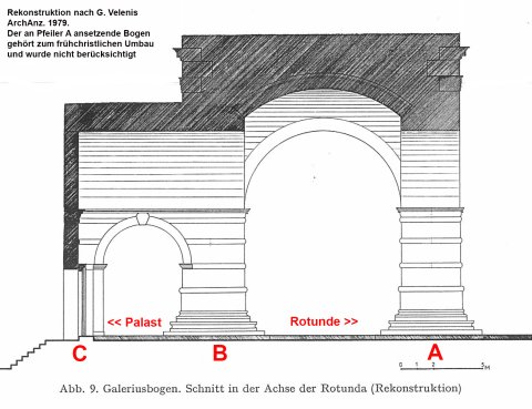 - E. Hébrard, Les Travaux du Service Archéologique de l’Armée d’Orient à l’Arc de Triomphe « de Galère » et à l’église Saint-Georges de Salonique. Bull. Corr. Hellénique 44, 1920, 5ff.; Ch. I. Makaronas, The arch of Galerius at Thessaloniki, 1970; H. P. Laubscher, Der Reliefschmuck des Galeriusbogens in Thessaloniki (Berlin 1975); H. Torp, L’entrée septentrionale du palais impérial de Thessalonique: L’arc de triomphe et le vestibulum d’après les fouilles d’Ejnar Dyggve en 1939. Ant. Tardive 11, 2003, 239 ff.; E. Hadjitryphonos, The Palace of Galerius in Thessalonike: its place in the modern city and an account of the state of research, in: Bruckneudorf und Gamzigrad, Akten des Internationalen Kolloquiums in Bruckneudorf 2008, 2011, 203 ff.