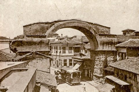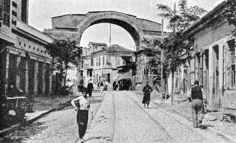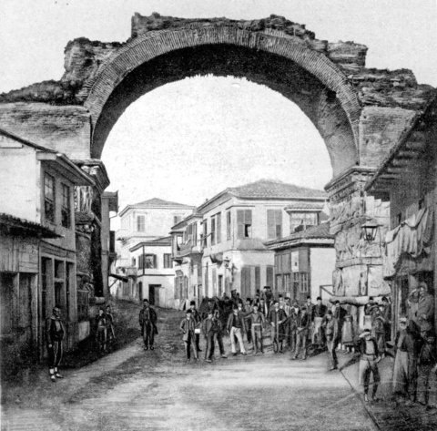 Foto: Ansichtskarte vor 1894. Die Pferdebahn, die nach M.Mazower, Salonica (2004) 240, im Jahre 1894 gebaut wurde, existiert noch nicht.
