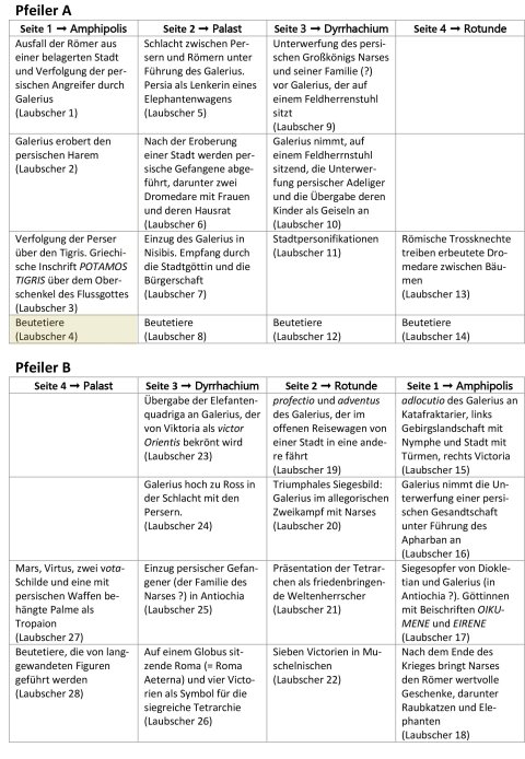 - M. S. Pond: The arch of Galerius. A sculptural record of the age of the Tetrarchies. Ann Arbor 1970; H. P. Laubscher: Der Reliefschmuck des Galeriusbogens in Thessaloniki. Berlin 1975, 31 Fries A I 4; E. Mayer, Rom ist dort, wo der Kaiser ist. Untersuchungen zu den Staatsdenkmälern des dezentralisierten Reiches von Diokletian bis Theodosius II. Mainz 2002