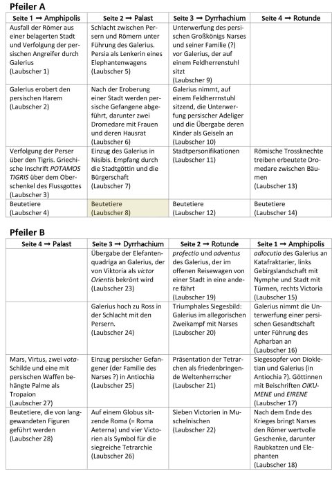 - M. S. Pond: The arch of Galerius. A sculptural record of the age of the Tetrarchies. Ann Arbor 1970; H. P. Laubscher: Der Reliefschmuck des Galeriusbogens in Thessaloniki. Berlin 1975, 38 Fries A II 8; E. Mayer, Rom ist dort, wo der Kaiser ist. Untersuchungen zu den Staatsdenkmälern des dezentralisierten Reiches von Diokletian bis Theodosius II. Mainz 2002