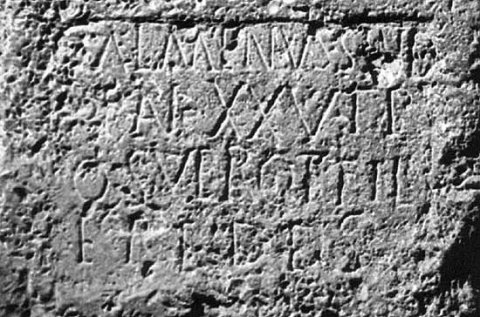 - Calmenus Sind/io(nis) f(ilius) an(norum) XXV t(itulum) p/osuerot(!) fil(ii) / (h)eredes