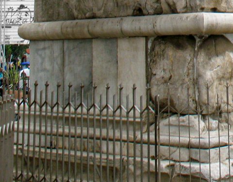 - Pfeiler A, Seite in Richtung Rotunde, unteres Register. Relief: Umrisse eines Tieres, Rest eines Zuges von Beutetieren