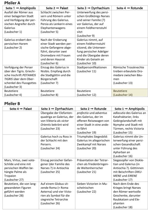 - M. S. Pond: The arch of Galerius. A sculptural record of the age of the Tetrarchies. Ann Arbor 1970; H. P. Laubscher: Der Reliefschmuck des Galeriusbogens in Thessaloniki. Berlin 1975, 45 Fries A IV 14; E. Mayer, Rom ist dort, wo der Kaiser ist. Untersuchungen zu den Staatsdenkmälern des dezentralisierten Reiches von Diokletian bis Theodosius II. Mainz 2002