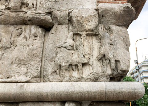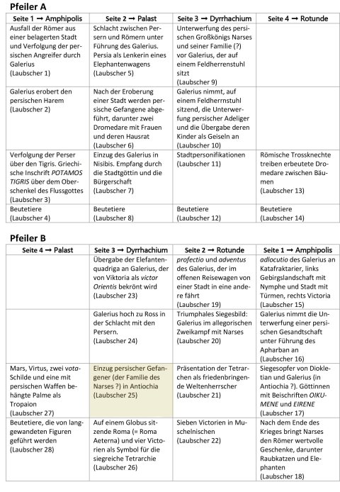 - M. S. Pond: The arch of Galerius. A sculptural record of the age of the Tetrarchies. Ann Arbor 1970; H. P. Laubscher: Der Reliefschmuck des Galeriusbogens in Thessaloniki. Berlin 1975, 84 Fries B III 25; E. Mayer, Rom ist dort, wo der Kaiser ist. Untersuchungen zu den Staatsdenkmälern des dezentralisierten Reiches von Diokletian bis Theodosius II. Mainz 2002