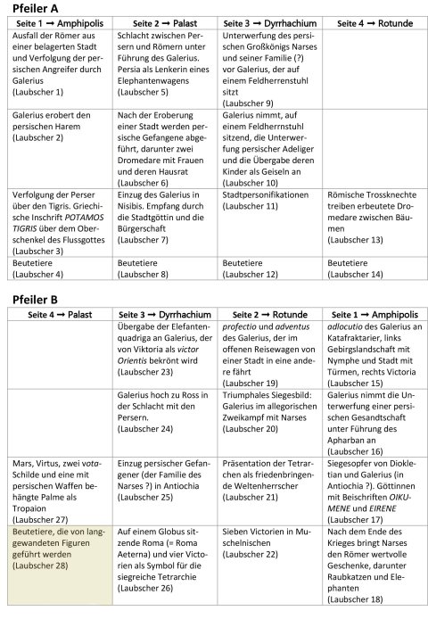 - M. S. Pond: The arch of Galerius. A sculptural record of the age of the Tetrarchies. Ann Arbor 1970; H. P. Laubscher: Der Reliefschmuck des Galeriusbogens in Thessaloniki. Berlin 1975, 91 Fries B IV 28; E. Mayer, Rom ist dort, wo der Kaiser ist. Untersuchungen zu den Staatsdenkmälern des dezentralisierten Reiches von Diokletian bis Theodosius II. Mainz 2002