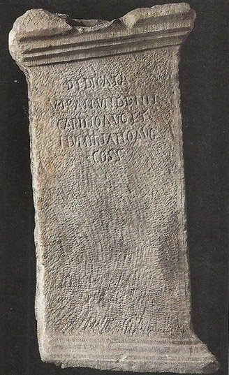 - Konsuldatierung 284 (27. Mai), spätere Inschrift nennt Kaiser Constans