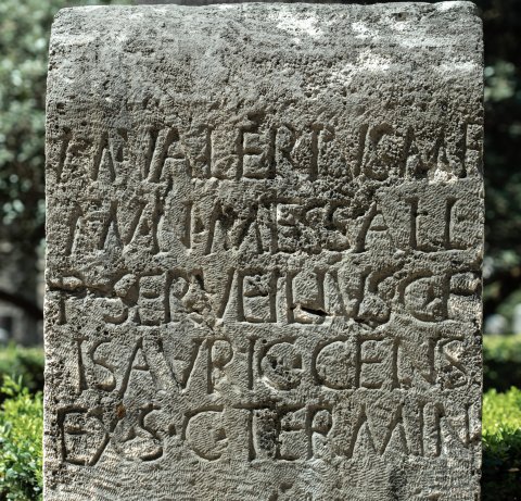 - M(arcus) Valerius M(arci) f(ilius) / Ma(ni) n(epos) Messall(a) / P(ublius) Serveilius C(ai) f(ilius) / Isauric(us) cens(ores) / ex s(enatus) c(onsulto) termin(arunt)