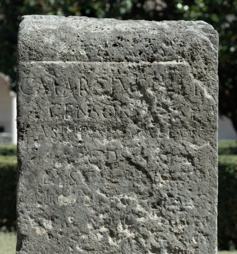 - C(aius) Marcius L(uci) f(ilius) L(uci) n(epos) / Censorinus / [[C(aius) Asinius [C(ai) f(ilius)] Gallus]] / co(n)s(ules) / ex s(enatus) c(onsulto) [termi]n(averunt) / r(ecta) r(egione) prox(imus) cippus ped(es) [---]