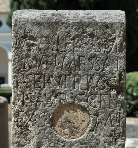 - M(arcus) Valerius M(arci) f(ilius) / Ma(ni) n(epos) Messal(la) / P(ublius) Serveilius C(ai) f(ilius) / Isauric(us) cens(ores) / ex s(enatus) c(onsulto) [te]rmi(narunt)