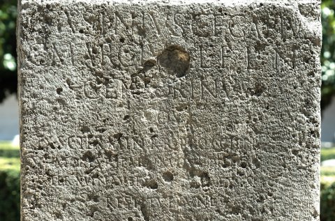 - C(aius) Asinius C(ai) f(ilius) Gallus / C(aius) Marcius L(uci) f(ilius) L(uci) n(epos) / Censorinus / co(n)s(ules) / ex s(enatus) c(onsulto) termin(averunt) prox(imus) cipp(us) p(edes) (!) / curatores riparum qui primi / terminaverunt ex s(enatus) c(onsulto) / restituerunt