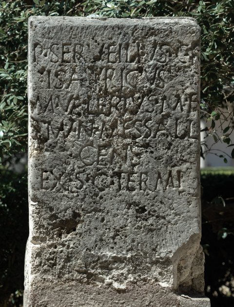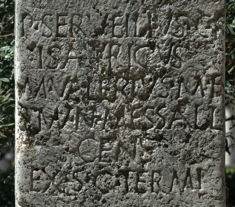 - P(ublius) Serveilius C(ai) f(ilius) / Isauricus / M(arcus) Valerius M(arci) f(ilius) / Ma(ni) n(epos) Messall(a) / cens(ores) / ex s(enatus) c(onsulto) termi(narunt)