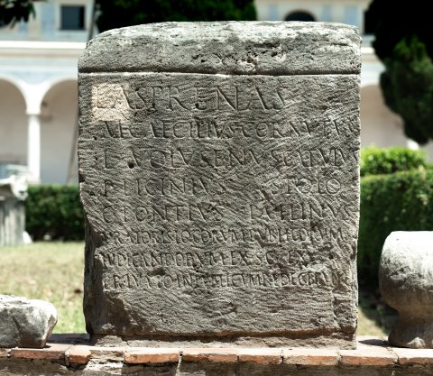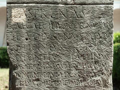 - L(ucius) Asprenas / M(arcus) Caecilius Cornutus / L(ucius) Volusenus Catulus / P(ublius) Licinius Stolo / C(aius) Pontius Paelignus / curatores locorum publicorum / iudicandorum ex s(enatus) c(onsulto) ex [[---]] / privato in publicum redegerunt