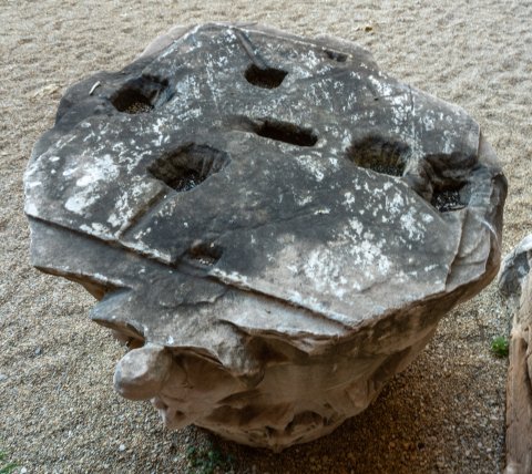 - stark beschädigt, in der Oberseite Dübel- und Hebelöcher