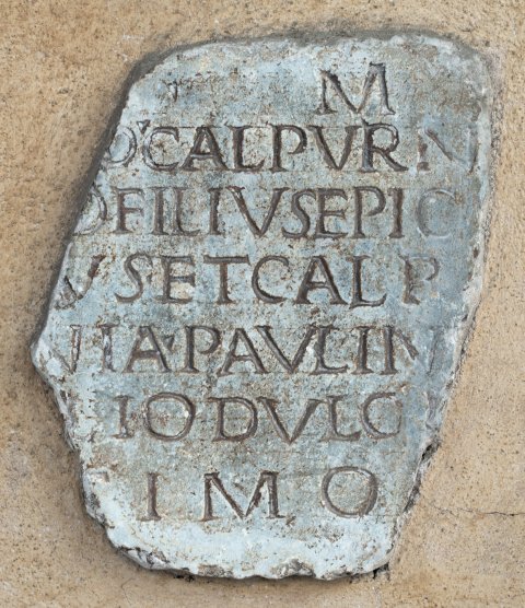 - CIL: D(is) M(anibus) / [--- Atili]o Calpurn[ia]/[no ---] A]tilius Epig[o]/[n]us et Calp[ur]/nia Paulin[a] / [fi]lio dulc[is]/[s]imo [fecerunt]