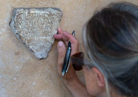[---]r in cuncits studioṣ[us? ---] / [---]ìvit Lachesis iacet h[ic ---] / [---]um castam duce[---] / [---]s carus cunct[is ---] / [---]sec[---] / [---]+[---] / [---? - Kommentar