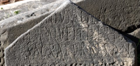 33165 Basisfragment mit Inschrift des Manius Acilius