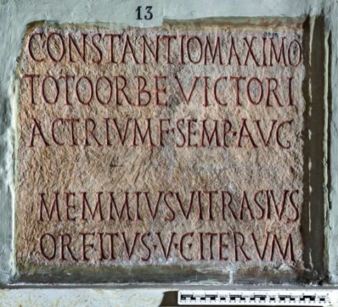 Propagato[ri imperii] / Roma[ni d(omino) n(ostro) Fl(avio) Iulio] / Constantio Maximo / toto orbe victori / ac triumf(atori) semp(er) Aug(usto) /