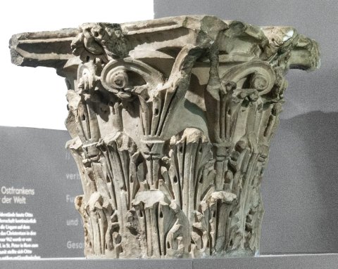 - Korinthisches Kapitell mit zwei Akanthusblattreihen und Abacusrosetten